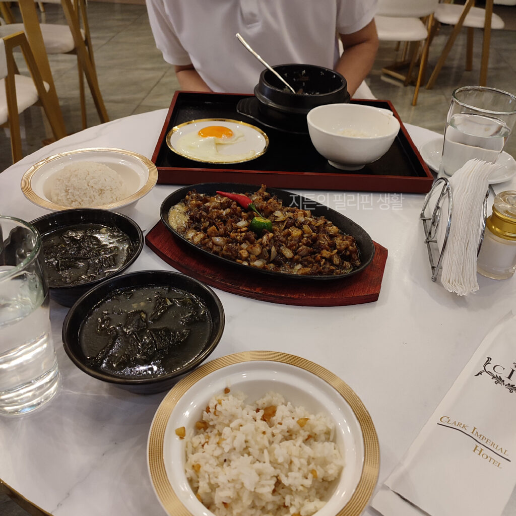 식당에서 한식에서 필리핀 현지식까지 다양한 메뉴를 맛볼 수 있으며 아침과 저녁의 메뉴가 상이합니다. 쉐프의 요리 솜씨가 좋아 일부 한식 메뉴는 한국에서 먹는 것보다 더 맛있을 정도 입니다.