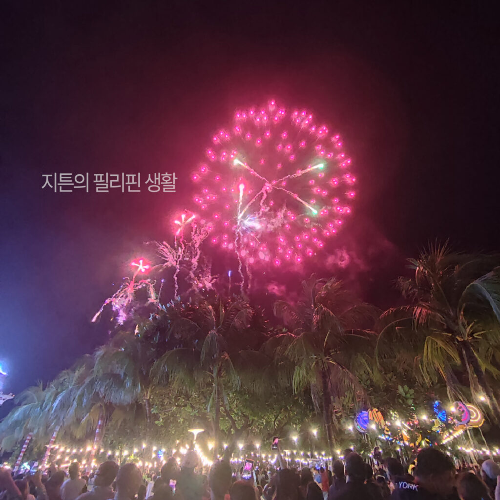 크리스마스 당일, 마닐라 베이 워크 (Manila Bay Walk)에서 불꽃 놀이 쇼와 엄청난 인파